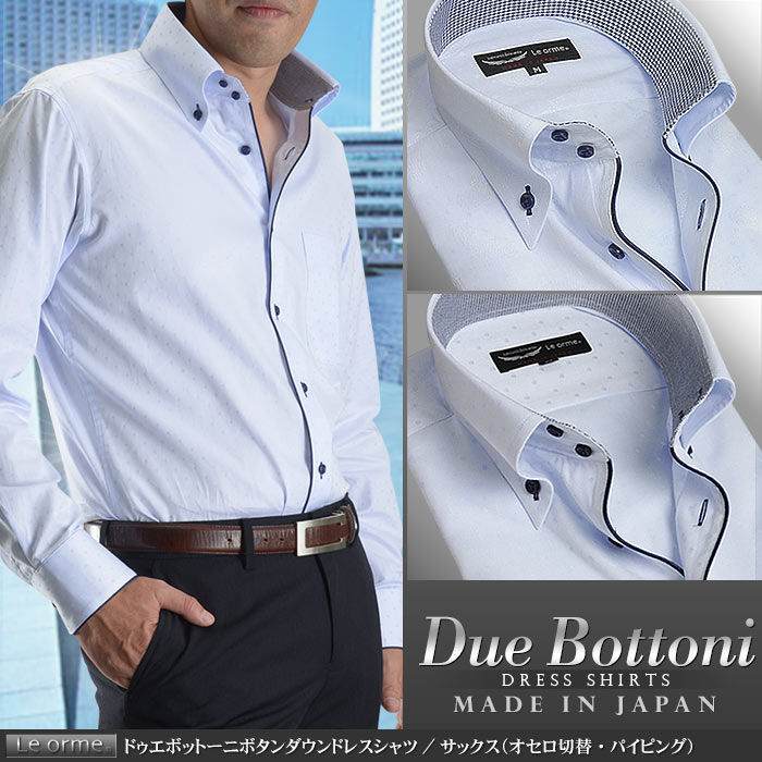 ドゥエボットーニ ボタンダウンドレスシャツ/サックス(オセロ切替・パイピング)