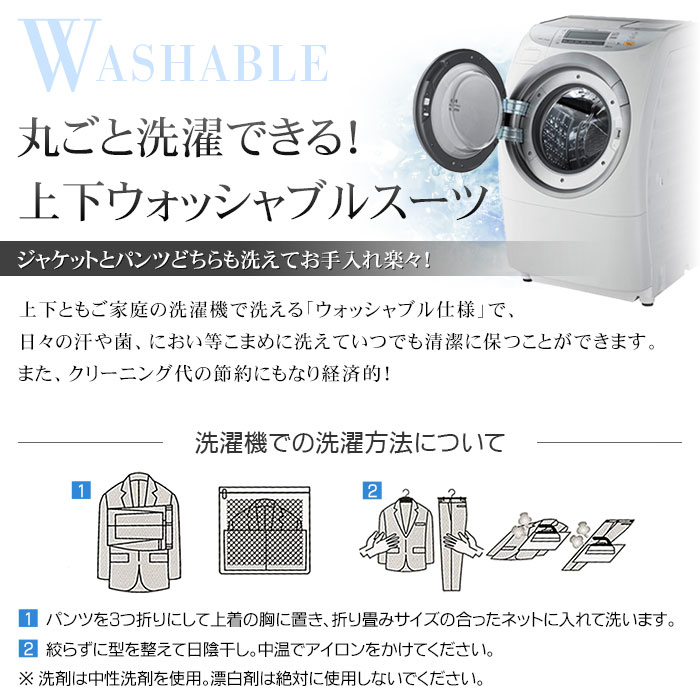 2ツボタン シングルスーツ センターベント 背抜き仕立て お台場仕立て ウォッシャブル機能(洗えるジャケット)