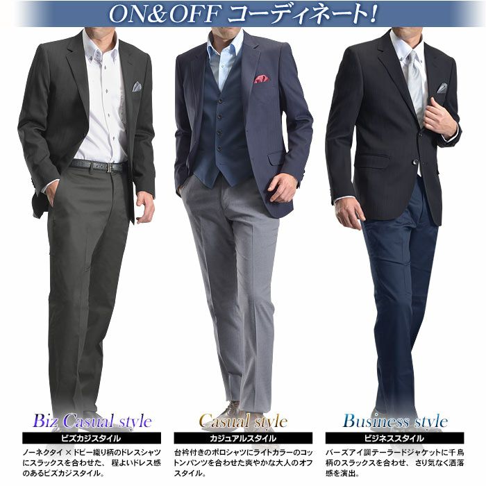 ビジネスからオフィスカジュアル、休日カジュアルスタイルに!