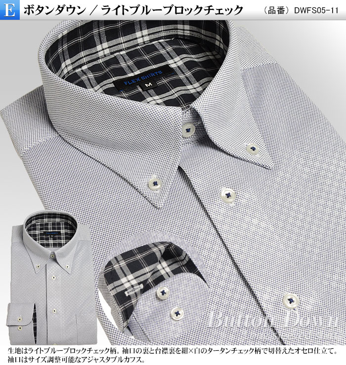E:ボタンダウン・ライトブルーブロックチェック(タータンチェック柄切替)