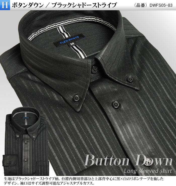 H:ボタンダウン・ブラックシャドーストライプ(リボンテープ付)