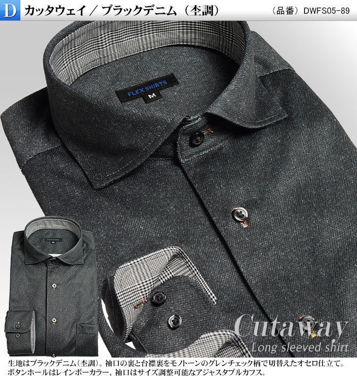 D:カッタウェイ・ブラックデニム(杢調)(グレンチェック柄切替)