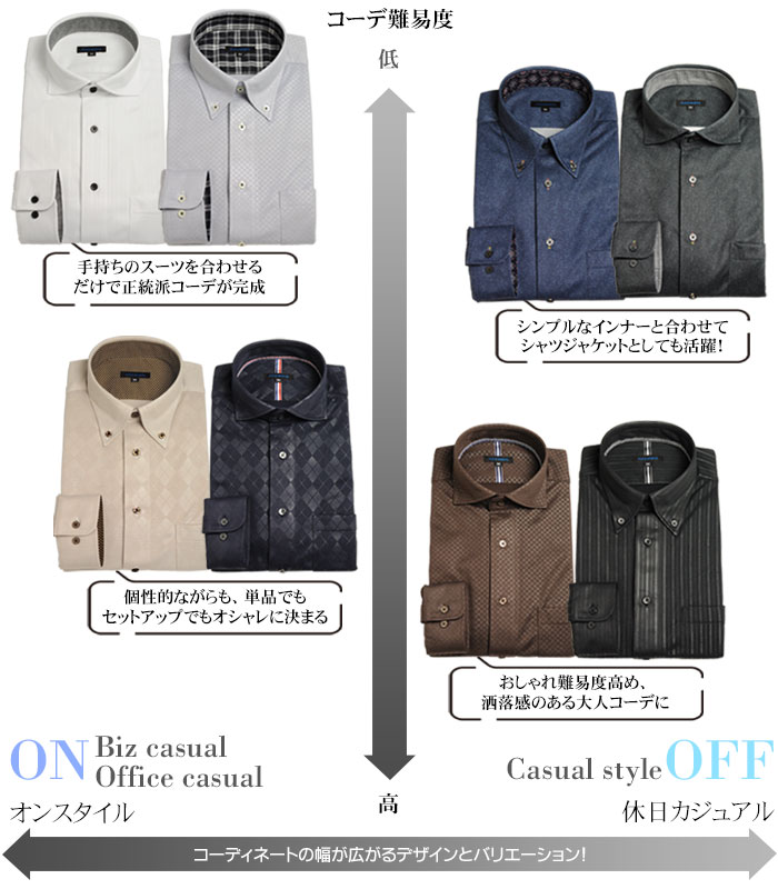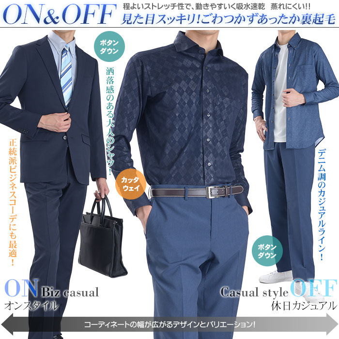 程よく伸縮性のある素材でビジネスやオフィスカジュアル、休日にも着用できる幅広いラインナップの裏起毛シャツをご提案。