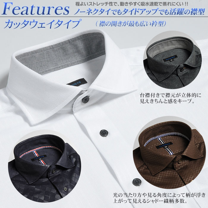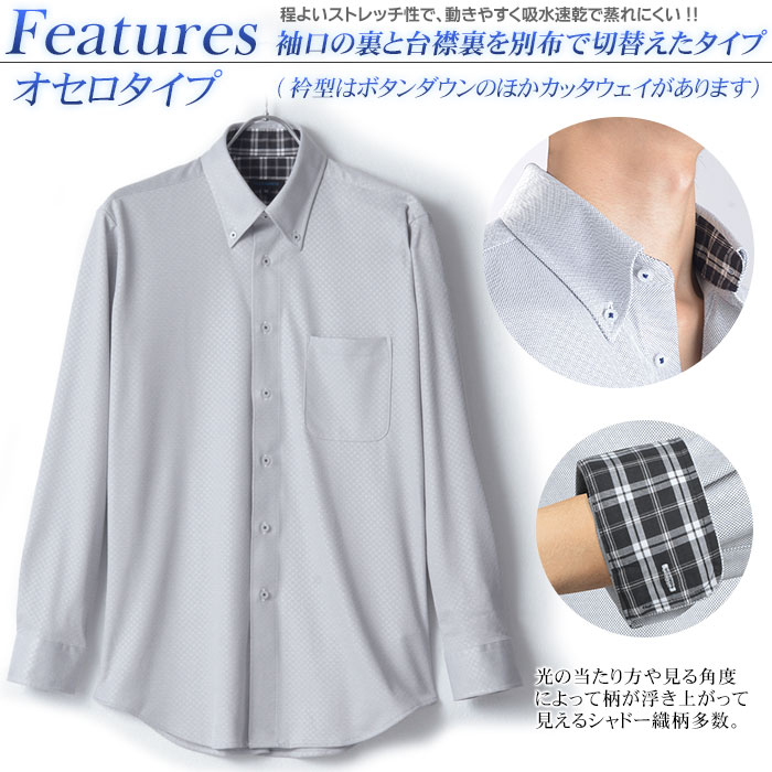 ニットシャツ 長袖 台襟付 前開き 伸縮性 カッタウェイ ボタンダウン 形態安定