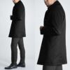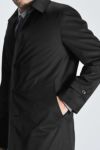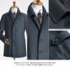 ディティールはフロント5ツボタンのシングルコート。衿元はコーディネイトのしやすいステンカラー。