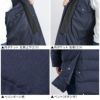 【素材】 | 表地:ポリエステル100% 裏地:ポリエステル100% 詰め物:ダウン80% フェザー20% |