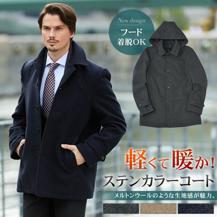他の画像を見る 新作は着脱可能なフード付き!軽量 暖かい ウールライク メルトン ショートコート(標準〜ややゆとりサイズ)ブラック ネイビー チャコールグレー ベージュ ビジネスコート 冬服 秋服 コート メンズ ビジネス ステンカラーコート ショート丈 メルトン ウール調 通勤 アウター ストレッチ スーツコート 冬 軽い 送料無料 価格 ¥ 9,800 税込 5.00 (1) カートに入れる お気に入りに登録する