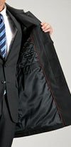 シルエットはスーツの上から羽織れる範囲内で、細身のシルエットを演出しております。