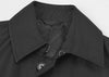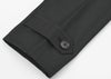 フロント部分は4ツボタンのボタンスルーデザインで、袖口にはカフストラップを装備。