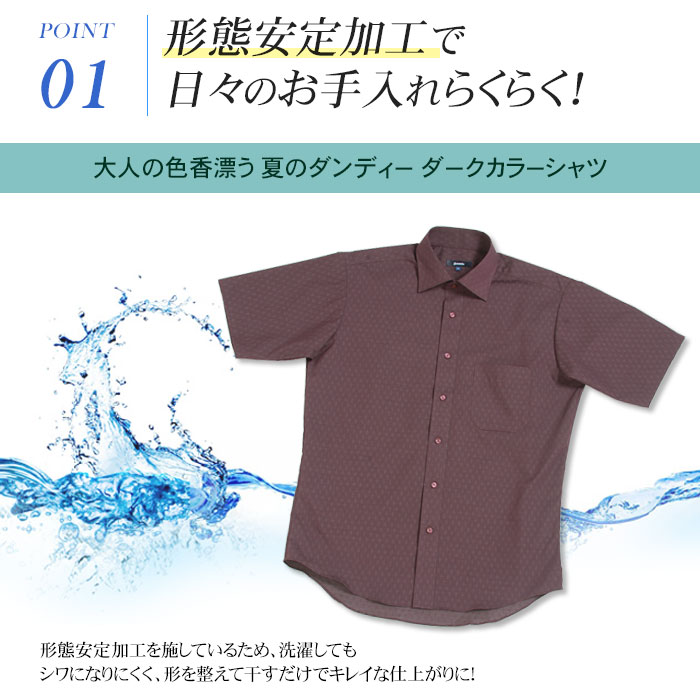 形態安定加工・大人のダンディーダーク半袖シャツ