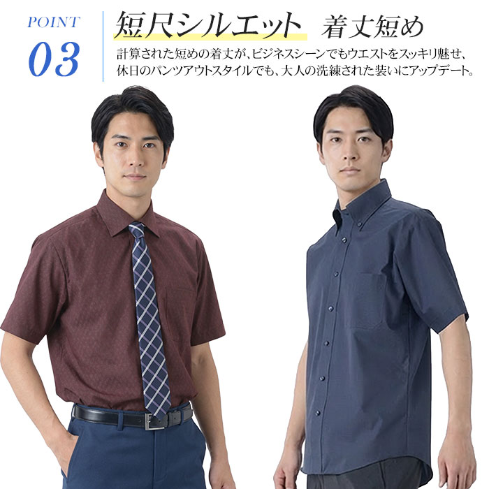 半袖 形態安定 (形状安定)加工 短尺 胸ポケット