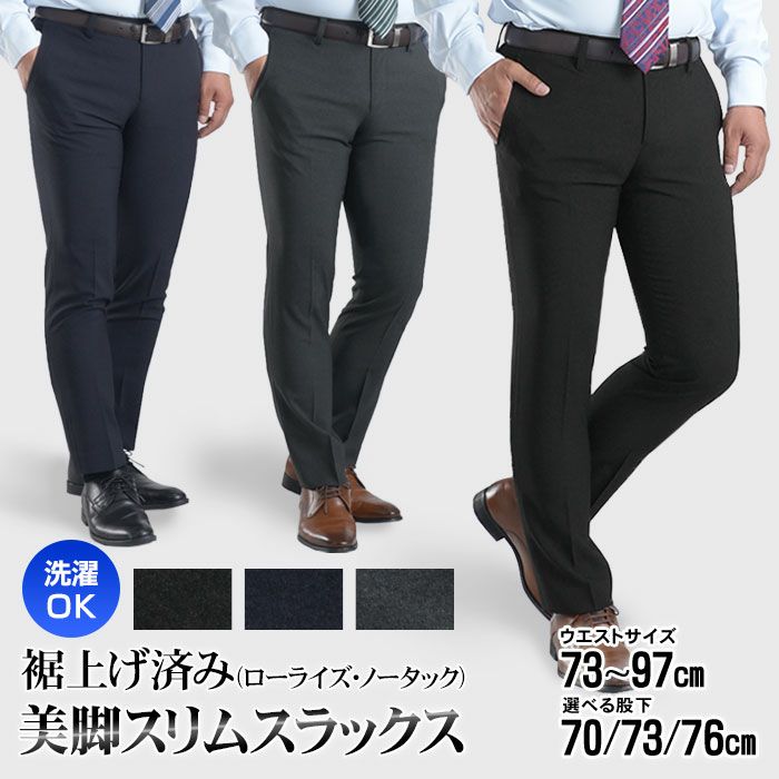 お直し不要の裾上げ済みスラックス。