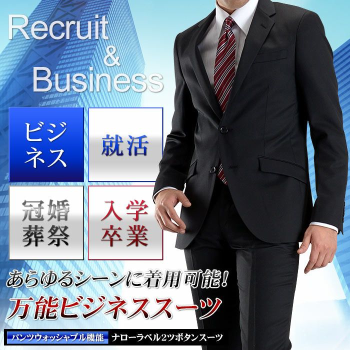 リクルート・フォーマルに対応!(やや細身/スリム体型)スリムスーツ 【Y体・A体・AB体】 リクルートスーツ メンズ 2つボタン ビジネススーツ 就活 面接 会社訪問 入社式 スリムスーツ セレモニー 冠婚葬祭 礼服 オールシーズン対応 洗えるパンツ プリーツ加工 【送料無料】