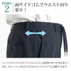 ノータックパンツ 裾上げ済み ベルトループあり ウエスト両サイドゴム仕様 ウエスト調整紐付き 裏地無し ウォッシャブル仕様