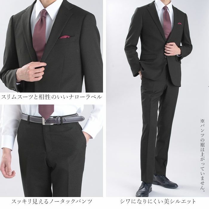 ナローラペル2ツボタンスリムスーツ(上下ウォッシャブル機能)