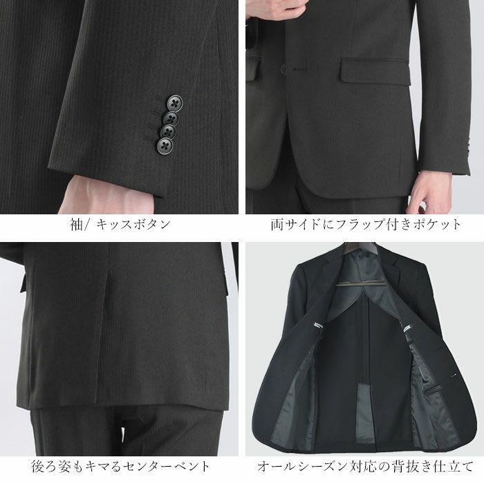 2ツボタン シングルスーツ センターベント 背抜き仕立て 袖キッスボタン 内ポケット ウォッシャブル機能