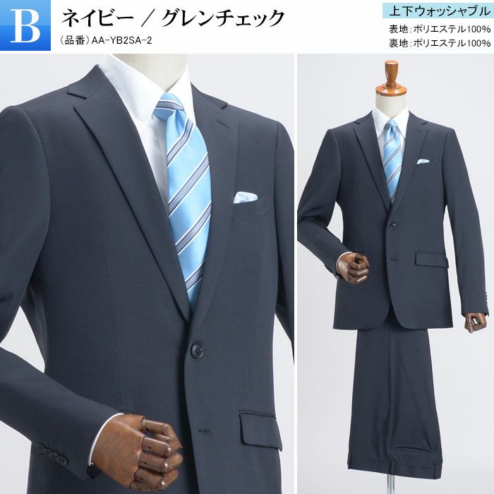 お洒落なビジネスマン必見!スタイル良く着こなせるスリム2Bスーツ!お手入れ簡単なウォッシャブル機能付きでコストパフォーマンスに優れた一着です。