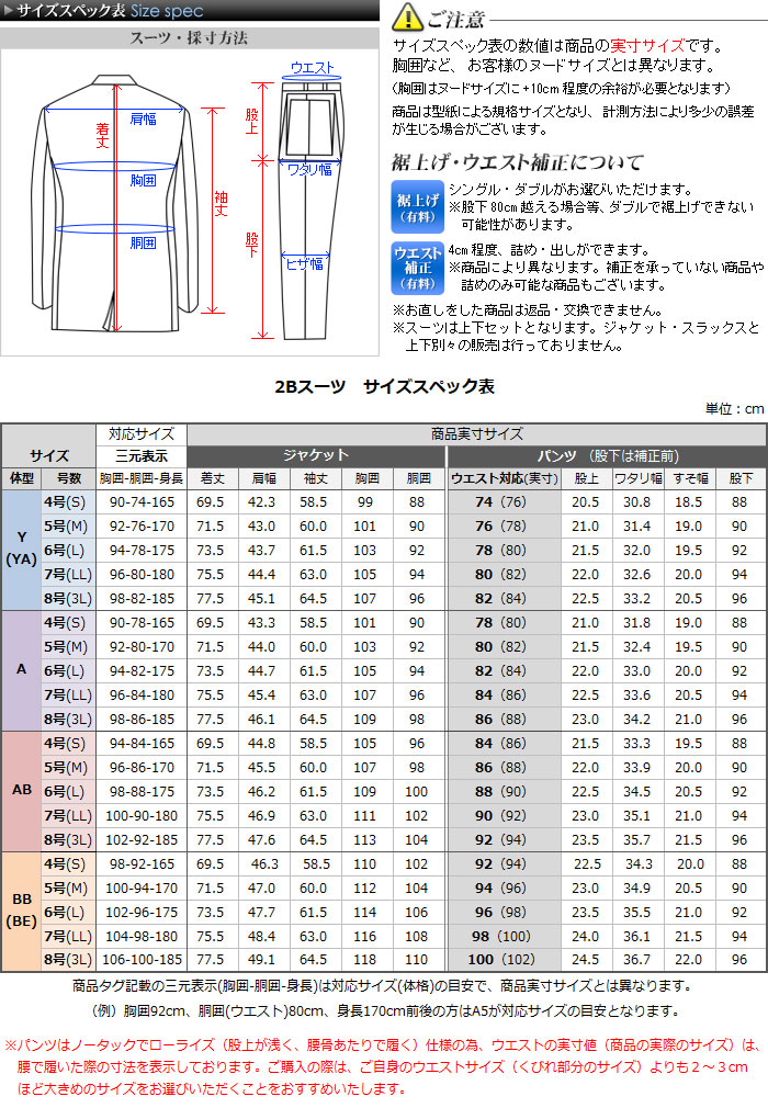 スーツのサイズ選びについて