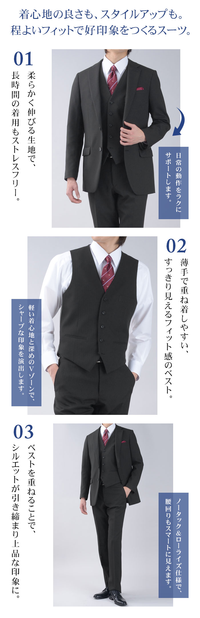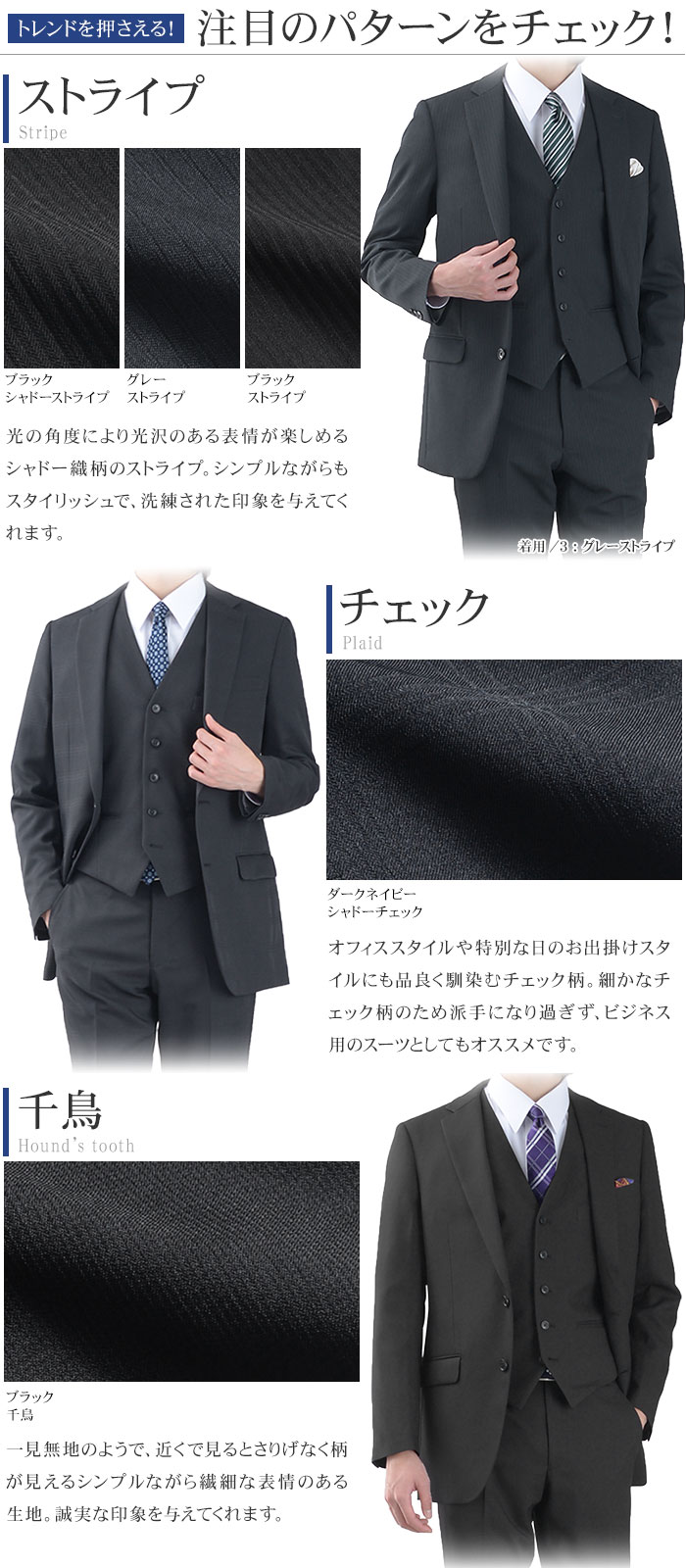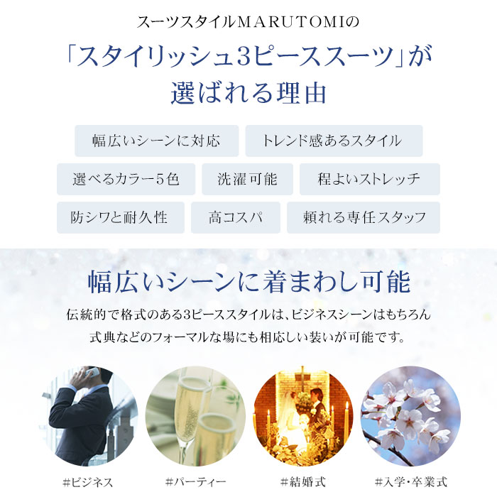 丸ごと洗える 上下 オフィススタイル ビジネススタイル メンズ (男性用・紳士用) MARUTOMI マルトミ メンズスーツ 仕事スーツ 普段用スーツ お洒落スーツ パーティー 結婚式 二次会 セミフォーマル 成人式 入学式 卒業式 入園式 卒園式 ブライダル スーツ ベスト付きスーツ 格上げ ベスト ジレ 3ピース 三つ揃いスーツ 細身 細い スリム スマート 2ツ釦 2釦 2ボタン 2B ブラックスーツ 黒 紺 灰色 ストライプ チェック 千鳥 |