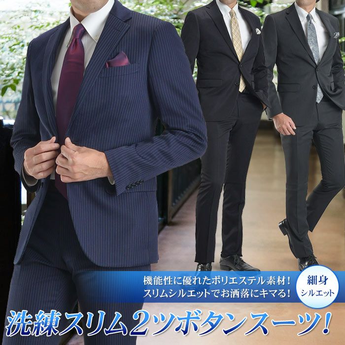 ナローラペル2ツボタンスリムスーツ