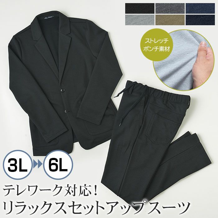 メンズ(男性用・紳士服) メンズファッション ジャケット パンツ セットアップ 上下ウォッシャブル ストレッチ ジャケパン 軽量 軽い イージーパンツ ドローストリング リラックスパンツ アクティブフィットスーツ らくらく カジュアル ビジカジ 灰色 黒 部屋着 家着 ルームウェア ホームウェア ワークスーツ web会議 リモートワーク 在宅勤務 セットアップ 伸縮素材