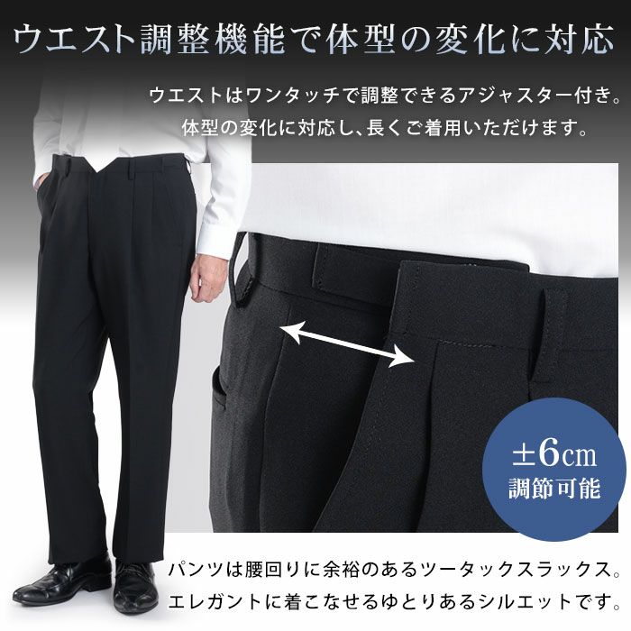 他の画像を見る 届いてすぐ着れる! 冠婚葬祭対応のお直し不要ブラックスーツ 裾上げ不要 洗えるフォーマルスーツ ウエスト/レングスアジャスター付 オールシーズン 送料無料 価格 ¥ 15,800 税込 カートに入れる お気に入りに登録する