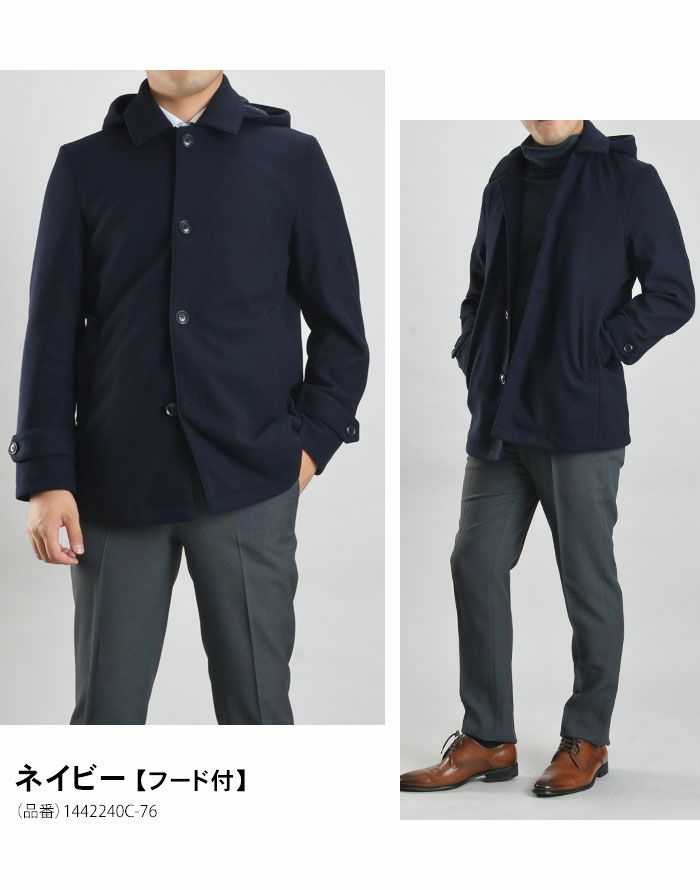他の画像を見る 新作は着脱可能なフード付き!軽量 暖かい ウールライク メルトン ショートコート(標準〜ややゆとりサイズ)ブラック ネイビー チャコールグレー ベージュ ビジネスコート 冬服 秋服 コート メンズ ビジネス ステンカラーコート ショート丈 メルトン ウール調 通勤 アウター ストレッチ スーツコート 冬 軽い 送料無料 価格 ¥ 9,800 税込 カートに入れる お気に入りに登録する