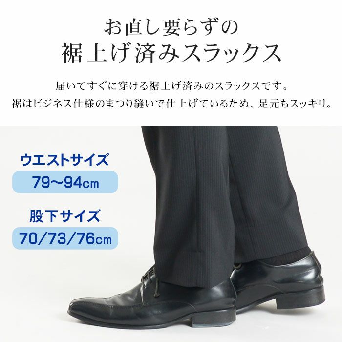 他の画像を見る 裾上げ済み お直し不要 ツータックスラックス ビジネス ズボン 紳士 COOLBIZ ウエスト79cm 82cm 85cm 88cm 91cm 94cm スラックス 夏用 裾上げ済 メンズ ツータック クールビズ 洗える ウォッシャブル 標準&ゆとりあるサイズ ビジネスパンツ 【1本3,990円 2本よりどり7,680円 3本よりどり10,800円】 送料無料 価格 ¥ 3,990 税込 カートに入れる お気に入りに登録する