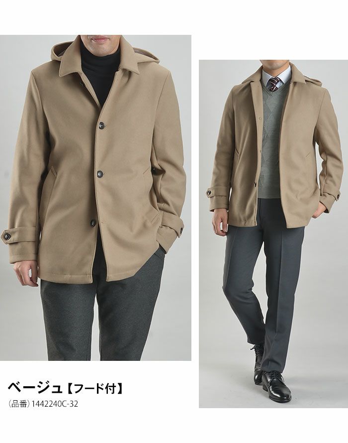 他の画像を見る 新作は着脱可能なフード付き!軽量 暖かい ウールライク メルトン ショートコート(標準〜ややゆとりサイズ)ブラック ネイビー チャコールグレー ベージュ ビジネスコート 冬服 秋服 コート メンズ ビジネス ステンカラーコート ショート丈 メルトン ウール調 通勤 アウター ストレッチ スーツコート 冬 軽い 送料無料 価格 ¥ 9,800 税込 カートに入れる お気に入りに登録する
