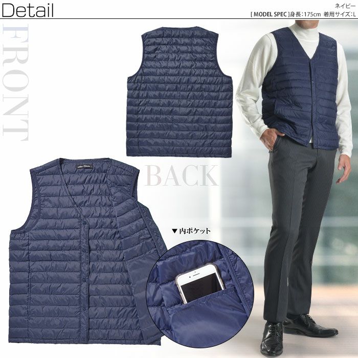 他の画像を見る オンオフ着まわせるインナーダウンベスト!(BIZカジ ビジカジ ビジネスベスト ポケッタブル) 【LLサイズのみ】インナーダウンベスト メンズ ジレ 暖かい おしゃれ 前開き Vネック 軽量 防寒 ポケッタブル ボタンフロント ビジネス カジュアル 秋冬 送料無料 価格 ¥ 3,890 税込 カートに入れる お気に入りに登録する