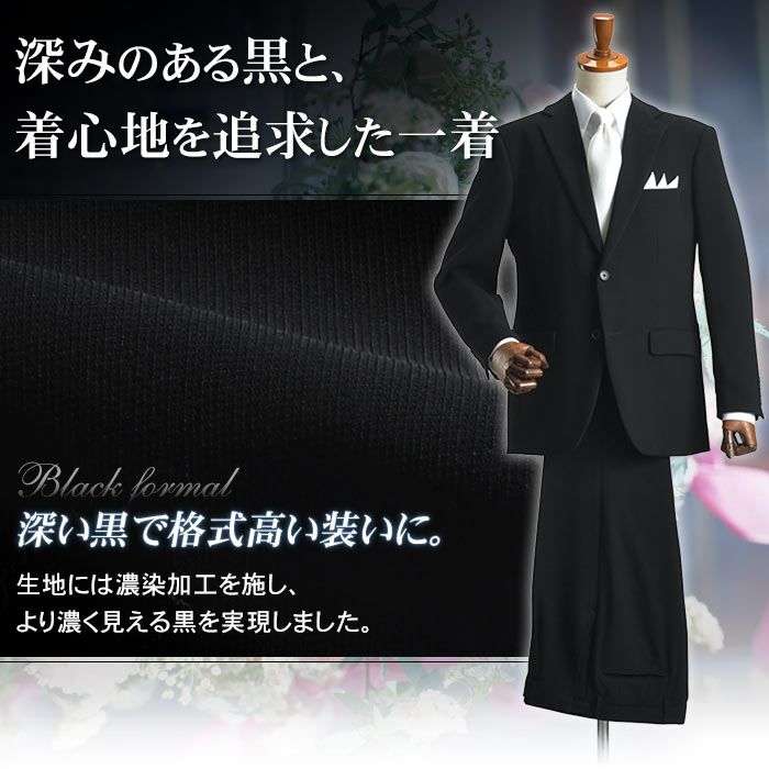 他の画像を見る 【超黒/濃染加工】着用感に優れたワンタックパンツ、本格仕様の礼服 フォーマルスーツ 礼服 メンズ 超黒/濃染加工 深みブラック ウール素材 2つボタン ワンタックパンツ 結婚式 披露宴 冠婚葬祭 黒 喪服 法事 セレモニー シングル 送料無料 価格 ¥ 27,800 税込 ベーシックスタイル本格派礼服・濃染加工/超黒(ゆったり~大きいサイズ) カートに入れる お気に入りに登録する