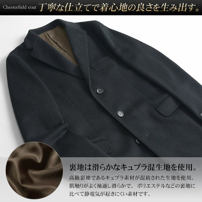 他の画像を見る カシミア100%の柔らかで着心地の良いニーレングス丈チェスターコート! メンズコート ビジネスコート カシミヤコート(スリム~標準サイズ) カシミヤ100% チェスターコート チェスターフィールド ニーレングス 【送料無料】 送料無料 価格 ¥ 59,900 税込 カートに入れる お気に入りに登録する