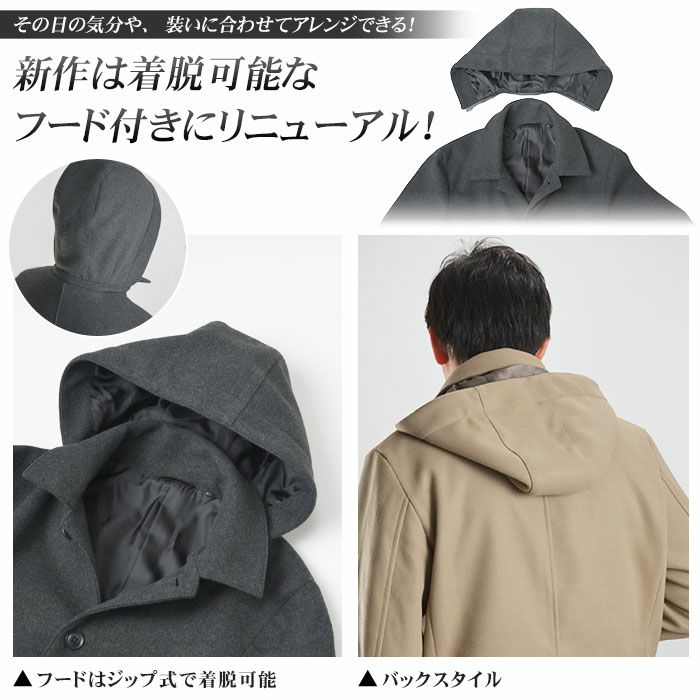 他の画像を見る 新作は着脱可能なフード付き!軽量 暖かい ウールライク メルトン ショートコート(標準〜ややゆとりサイズ)ブラック ネイビー チャコールグレー ベージュ ビジネスコート 冬服 秋服 コート メンズ ビジネス ステンカラーコート ショート丈 メルトン ウール調 通勤 アウター ストレッチ スーツコート 冬 軽い 送料無料 価格 ¥ 9,800 税込 カートに入れる お気に入りに登録する