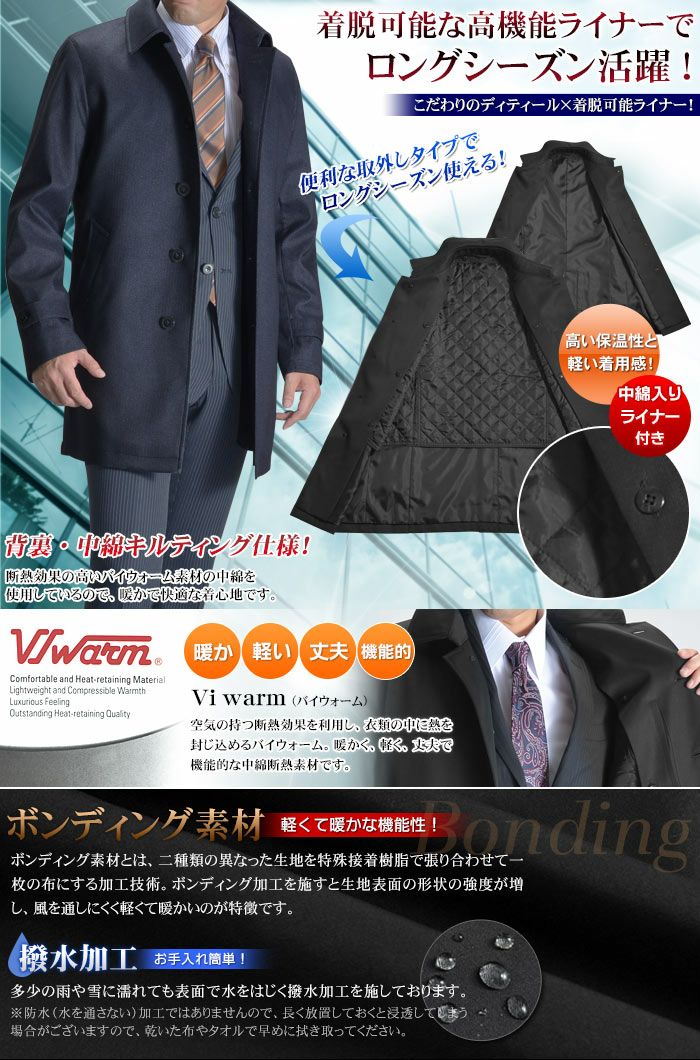 他の画像を見る 防寒性に優れるレイヤード 2枚襟スタンドカラーライナー付きコート!(黒 ブラック ビジネス スタンドコート 通勤コート)(標準~ややゆとりサイズ) コート メンズ ビジネス レイヤードライナー付 ボンディング素材 メンズコート 2枚衿 スタンドカラーコート 着脱キルティングライナー【送料無料】 送料無料 当店通常価格 ¥ 14,900 のところ 価格 ¥ 3,990 税込 カートに入れる お気に入りに登録する