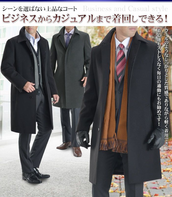 他の画像を見る 【カシミヤ混ウール素材】スリム ロングコート メンズ(超ロング メンズコート ビジネス ブラック 黒 ステンカラー トレンチ イタリアンカラー) 送料無料 当店通常価格 ¥ 39,800 のところ 価格 ¥ 35,820 税込 ランキングでも人気!エレガントな超ロングコート カートに入れる お気に入りに登録する