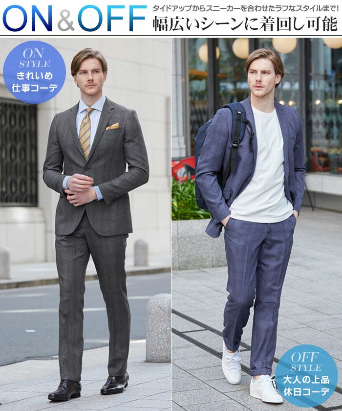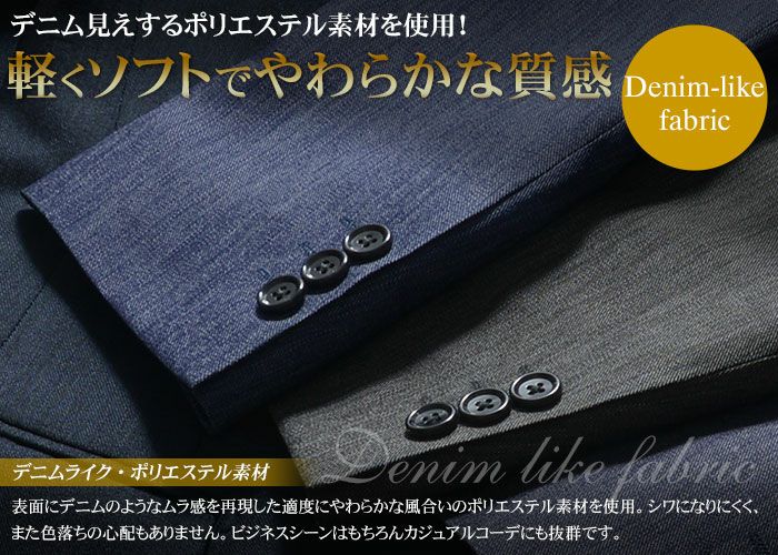 他の画像を見る ジャケット単品使いでジャケパンスタイルにも対応! 丸ごと洗える デニムライク素材 2つボタンスーツ 細身 ファンウォーク ビジカジ オフィス 紳士 【残り僅か】 デニム調スーツ メンズ 洗えるスーツ ビジネス カジュアルスーツ スリム おしゃれ デニム風 ウォッシャブルスーツ 春夏 スリーシーズン 2つボタン 上下ウォッシャブル プリーツ加工 デニムスーツ セットアップ 送料無料 在庫処分 当店通常価格 ¥ 9,980 のところ 価格 ¥ 9,800 税込 カートに入れる お気に入りに登録する