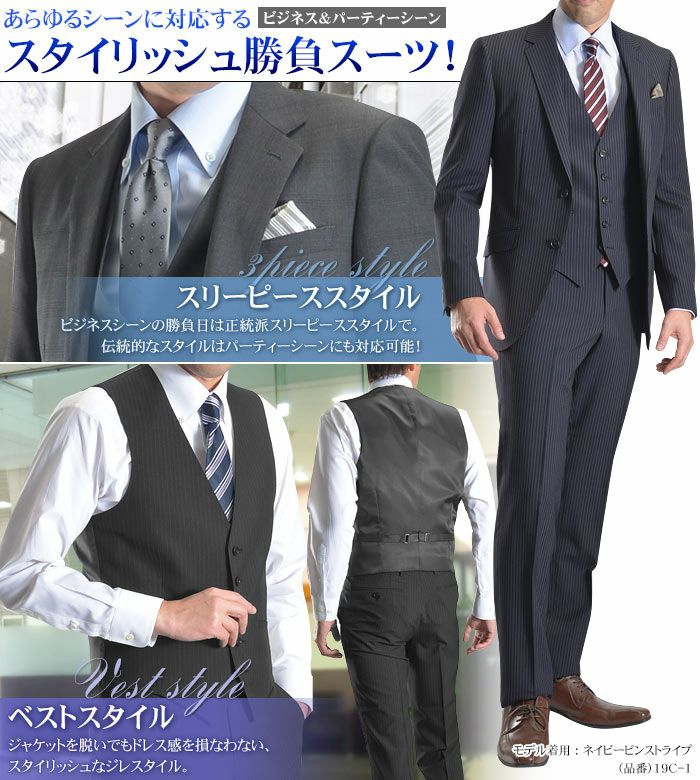 他の画像を見る スタイリッシュ2釦3ピーススーツ(細身シルエット) 【Y8限定】 2ツボタン スリム スタイリッシュ スリーピーススーツ 春夏 メンズ ビジネス パンツウォッシャブル プリーツ加工 suit【送料無料】 送料無料 価格 ¥ 17,990 税込 カートに入れる お気に入りに登録する