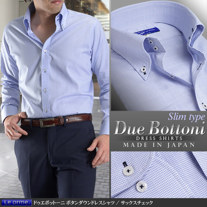 ドゥエボットーニ ボタンダウンドレスシャツ/サックスチェック