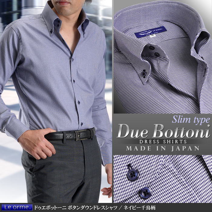 ドゥエボットーニ ボタンダウンドレスシャツ/ネイビー千鳥柄