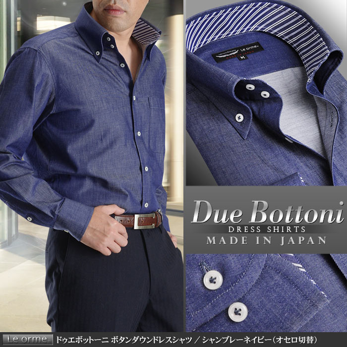 ドゥエボットーニ ボタンダウンドレスシャツ/シャンブレーネイビー(オセロ切替)
