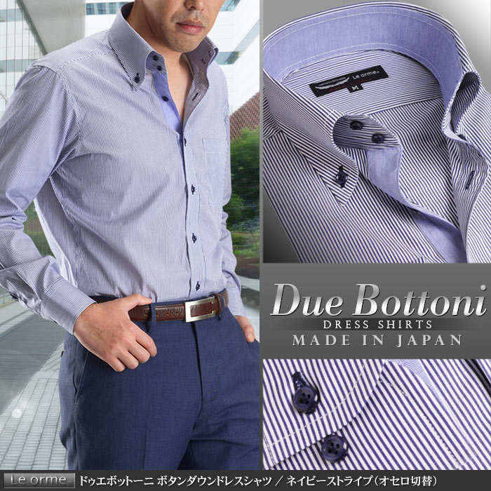 ドゥエボットーニ ボタンダウンドレスシャツ/ネイビーストライプ(オセロ切替)