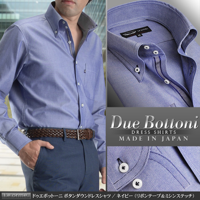 ドゥエボットーニ ボタンダウンドレスシャツ/ネイビー(リボンテープ&ミシンステッチ)