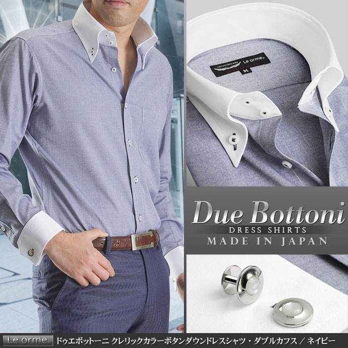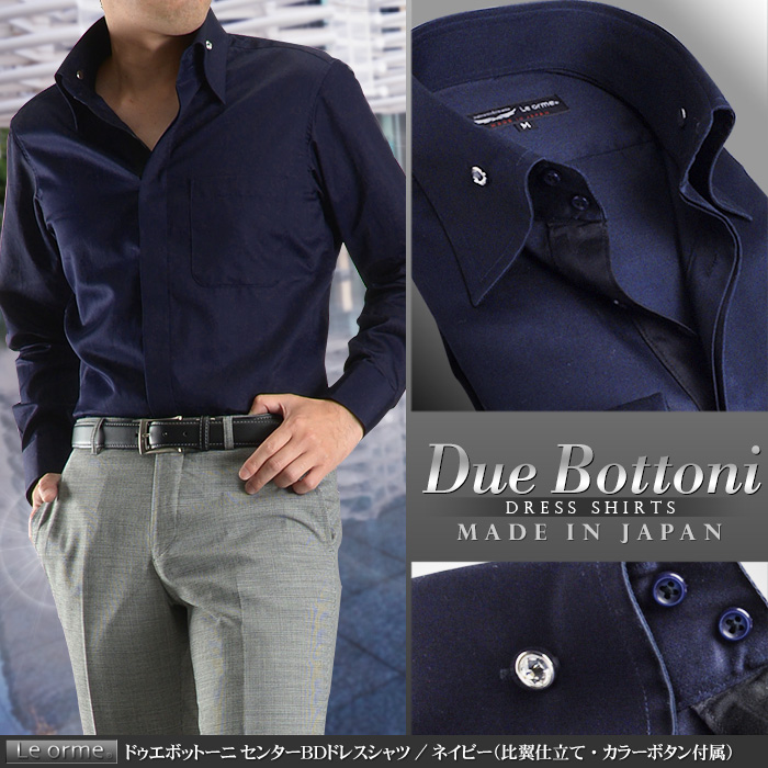 ドゥエボットーニ センターボタンダウンドレスシャツ/ネイビー(スワロフスキーカラーボタン付)
