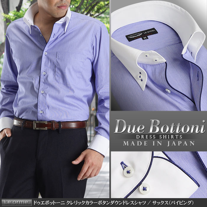 ドゥエボットーニ ボタンダウンドレスシャツ/サックス(オセロ切替・パイピング)