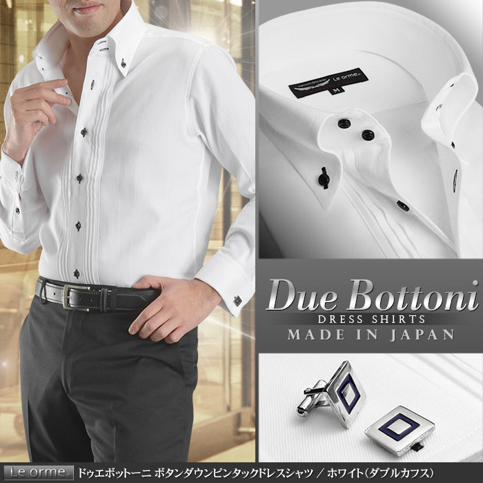ドゥエボットーニボタンダウンピンタックドレスシャツ/ホワイト(ダブルカフス)