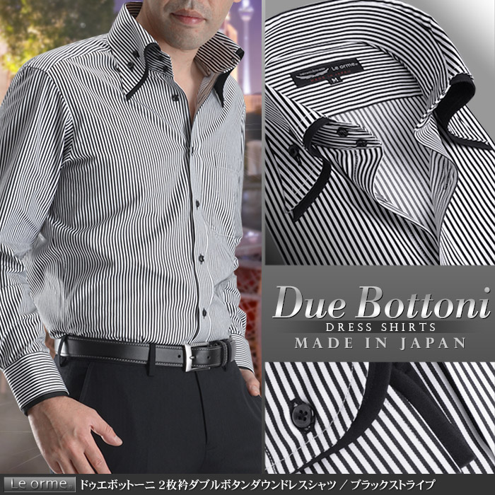 ドゥエボットーニ2枚衿ダブルボタンダウンドレスシャツ/ブラックストライプ