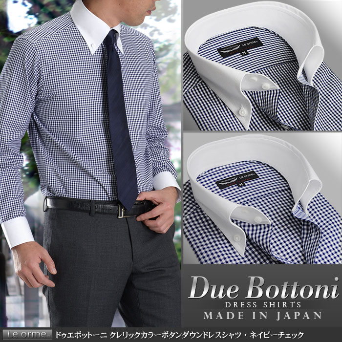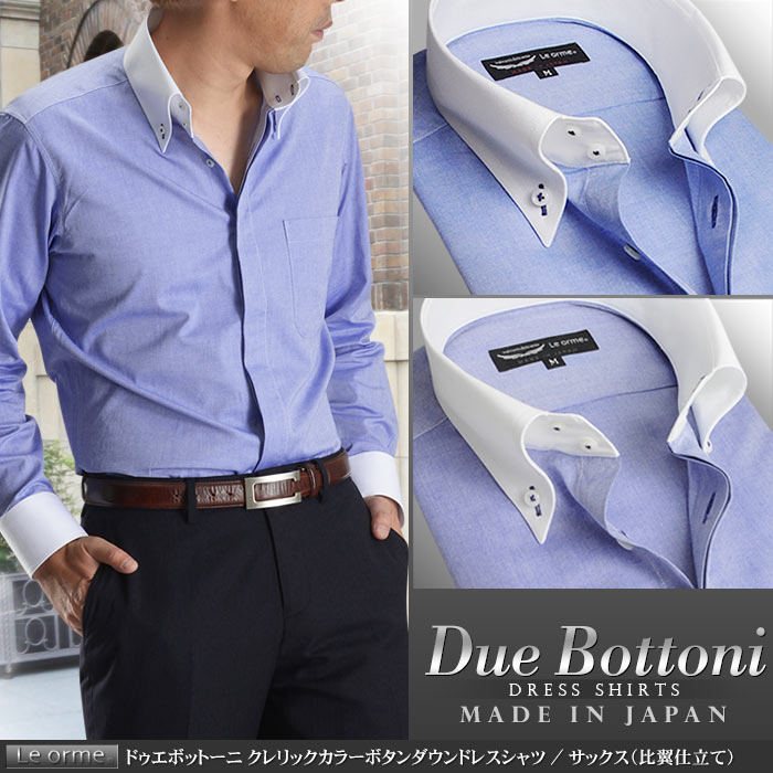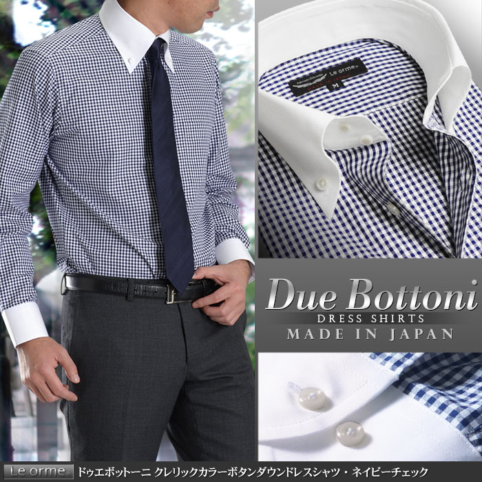 ドゥエボットーニ スナップダウンメンズドレスシャツ