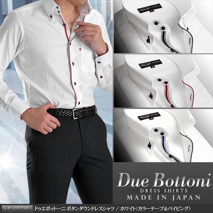 ドゥエボットーニ・ボタンダウンドレスシャツ/ホワイト(カラーテープ&パイピング)