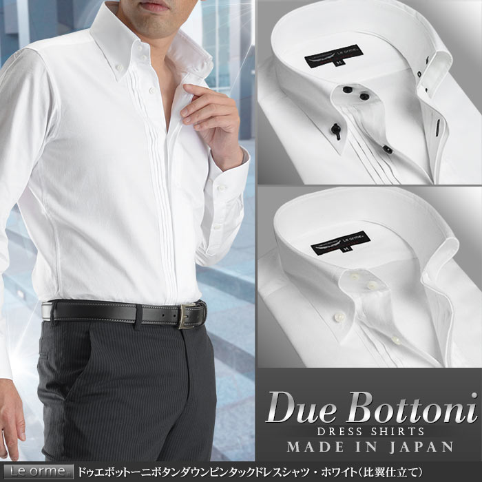 ドゥエボットーニ・ボタンダウンピンタックドレスシャツ/ホワイト(比翼仕立て)