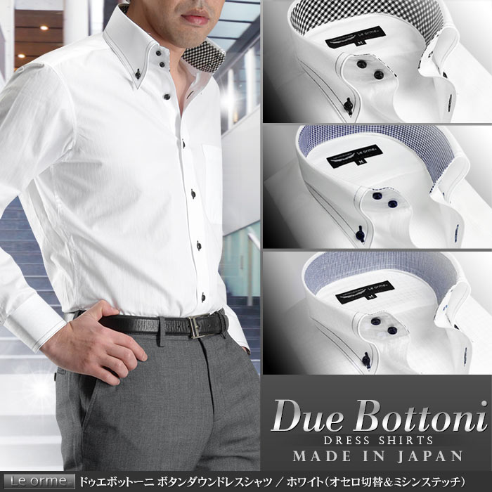 ドゥエボットーニボタンダウンドレスシャツ/ホワイト(オセロ切替・ミシンステッチ)